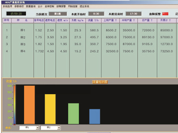 系統概述產量計量監控系統是一種對煤礦的煤炭產量計量和管理的智能化設備,利用計算機技術和通訊技術對計量數據進行管理,系統由稱重計量子系統;計算機管理子系統;網絡通訊系統組成。數據監控終端可通過對數據服務器的訪問,實現對產量數據的實時監控。并將實時產量數據通過WEB發布到局域網內的信息平臺,供企業內部瀏覽、查詢和數據歸總等管理。系統技術參數:計量精度:優于0.25~1.0%計量電子皮帶秤數量:1-16臺(以太網形式可達16臺的整數倍)通訊距離:30km(以太網形式可突破地域限制)(軟件界面)系統功能及特點 計量獨立,不受中心站停電、故障以及通訊線路的影響,可以自動換班,能永久存儲班產量; 動態測量精度高,性能穩定,工作可靠,零點漂移自動跟蹤功能模塊,保證系統計量精度長期穩定;不受物料的物理性質的影響,輸送不同物料時,不須重新標定; 數據庫型上位機集控軟件,形象直觀運行界面、操作簡單,信號、瞬時流量、皮帶開停時間累計等多圖表顯示和動態曲線顯示; 皮帶秤數據可通過礦井電話通訊線路或礦井工業環網交換機進行數據傳輸,集控軟件通過局域網對皮帶秤計量數據進行采集。 豐富多樣報表數據瀏覽形式,能夠對班產量、日、月、年產量進行多種統計查詢處理; 生產效益統計分析功能,獨有的防作弊數據處理功能; 操作人員無需下井即可完成對井下電子秤的日常標校及狀況管理; 支持OPC接口、FTP接口等豐富多樣的數據輸出接口,方便企業進行數據采集和管理。 可實現網絡連接,通過web發布實現局域網上數據共享。計量系統圖片